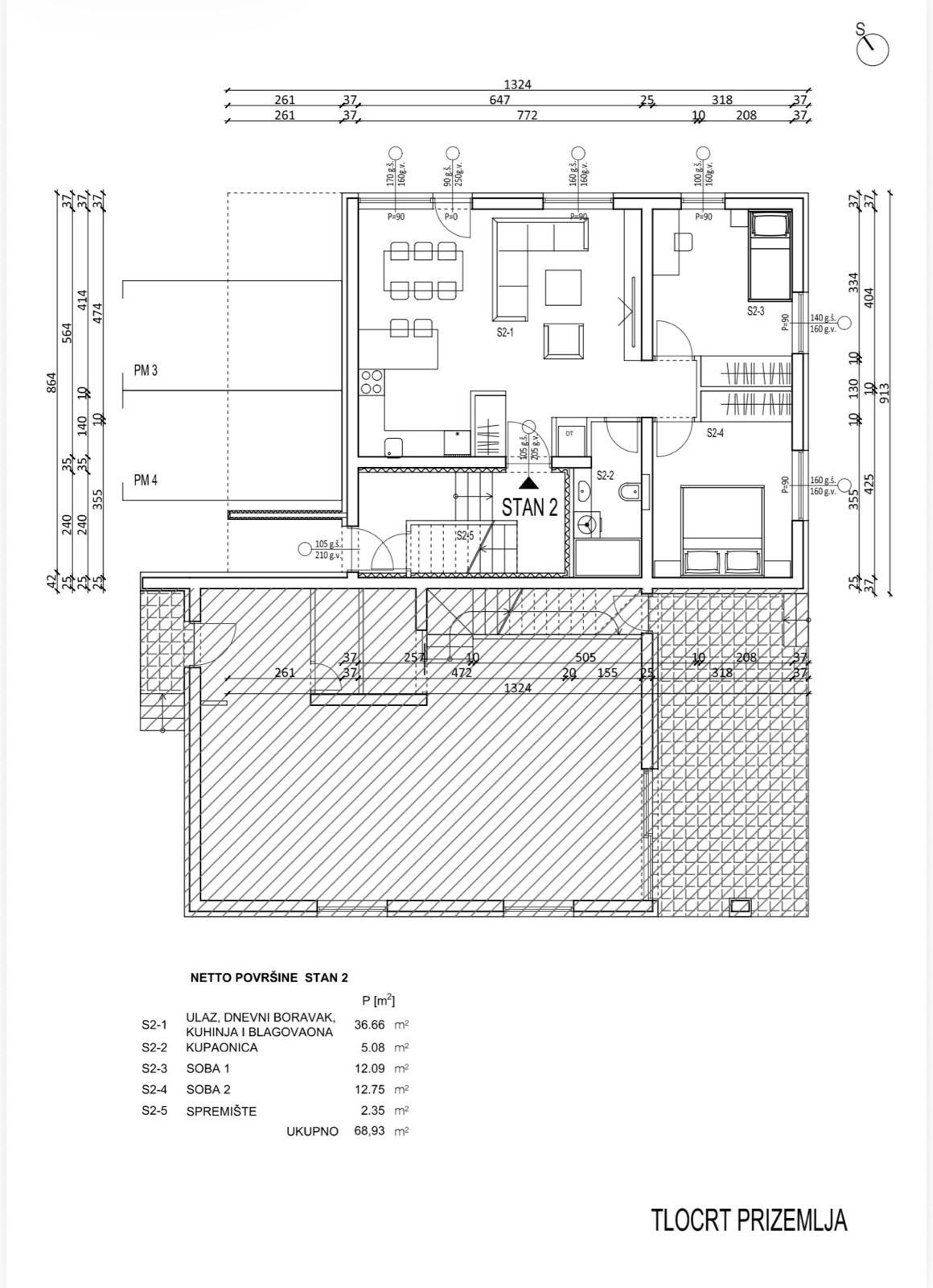Stan S-2, smješten u prizemlju zgrade.