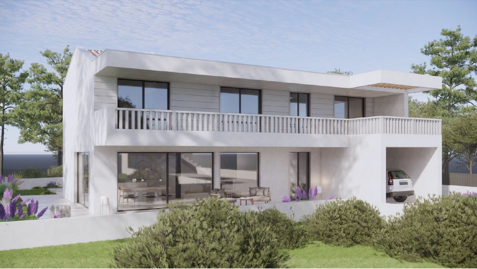 - Prizemlje | Dnevni boravak s kuhinjom i blagovaonicom, teretana, wc, strojarnica, garaža