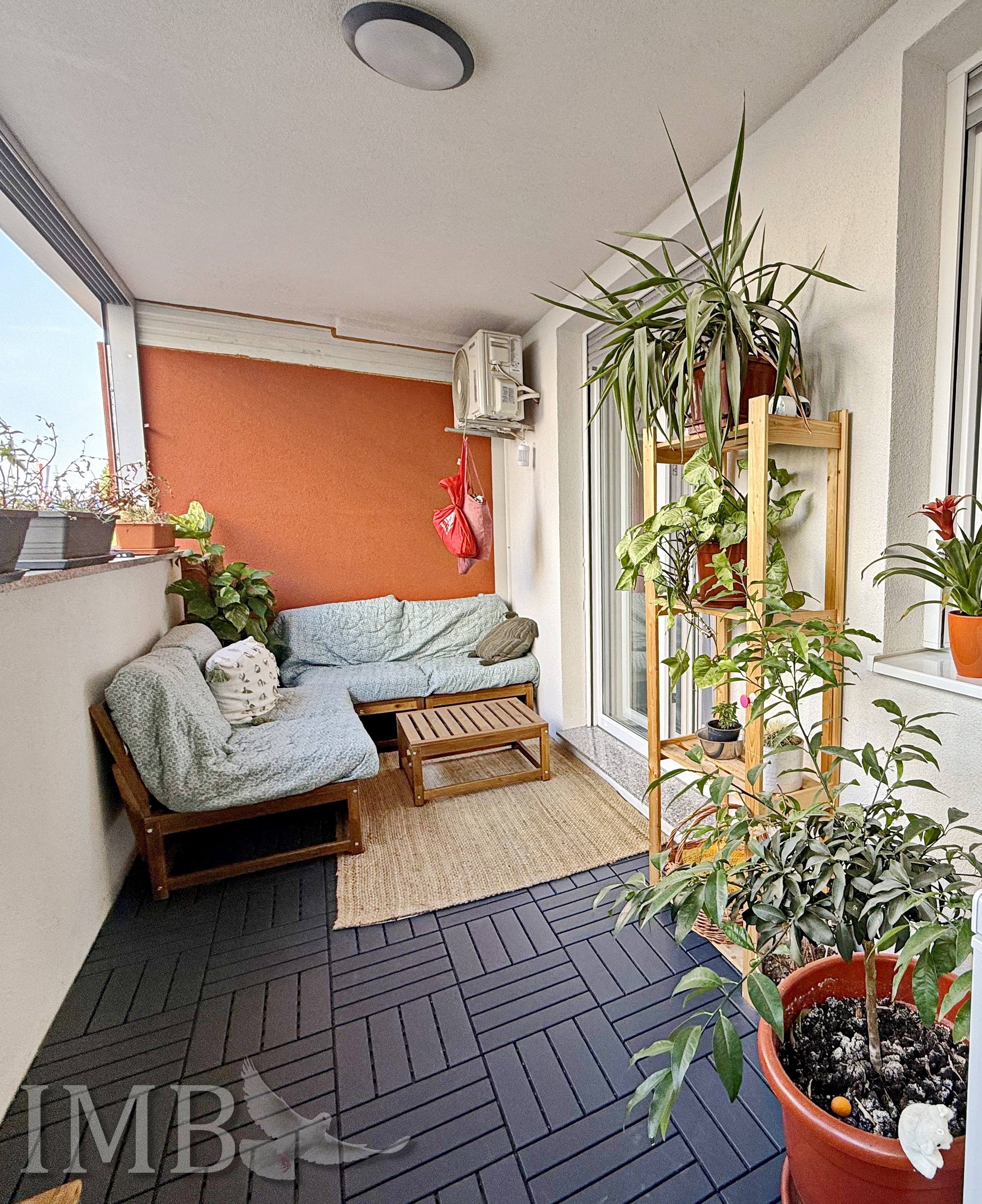 Loggia je povezana s dnevnim prostorom, a zahvaljujući velikim staklenim kliznim stijenama koristi se tijekom cijele godine. Stanu pripada i vanjsko parkirno mjesto površine 12,50 m².
